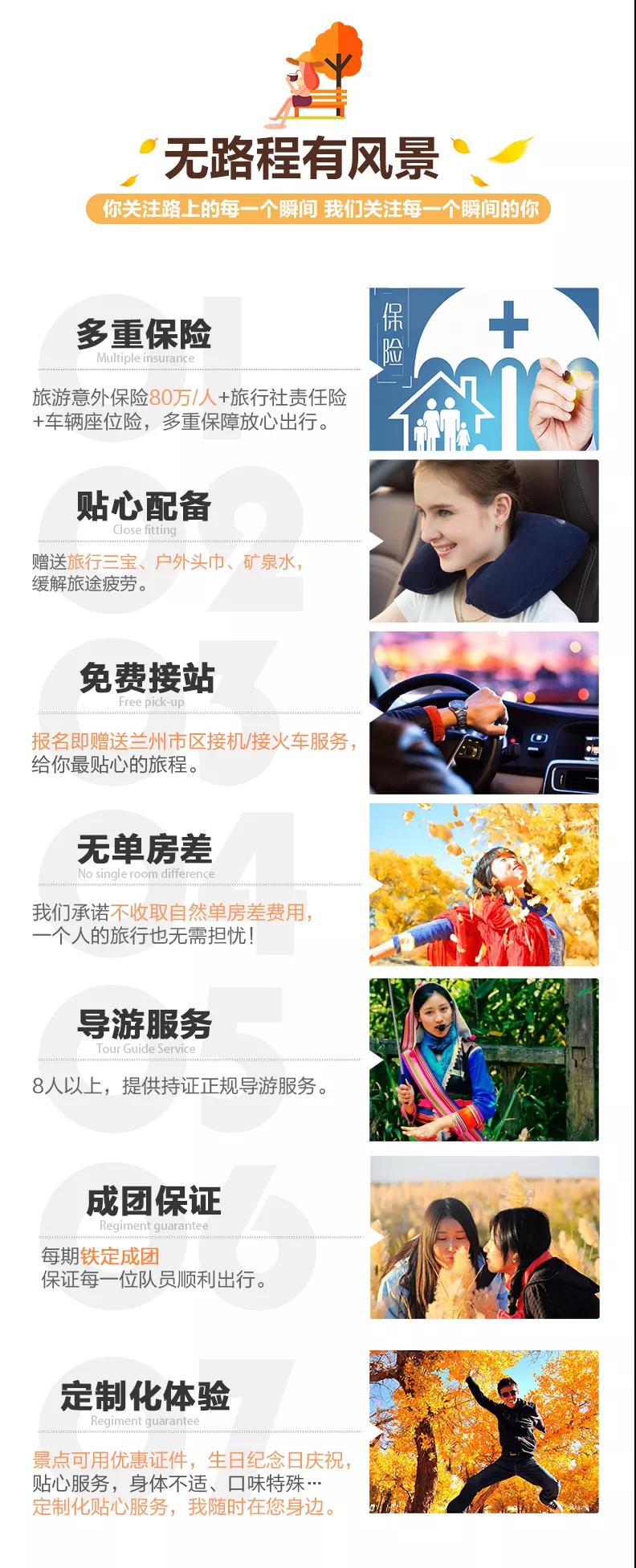 接站服務(wù):3人以下的客人抵達蘭州可自行打車前往指定酒店,打車費用可報銷30元/人;3人及以上的客人抵達蘭州可提供蘭州市區(qū)拼車接機/接火車服務(wù),接機/接火車的工作人員會在您出發(fā)日期前一天21:30之前向您推送消息并與您聯(lián)系,如果超過時間沒有接到任何通知,請及時與導(dǎo)游或報名處聯(lián)系。(節(jié)假日用車人數(shù)較多情況下客人等待時間可能會延長;我方會安排臨近航班拼車接機接站,如遇其他客人航班火車延誤晚點情況,等待時間可能會延長,敬請諒解)