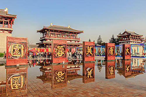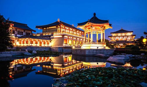結(jié)束后赴西安游覽【大唐芙蓉園】它是在原唐代芙蓉園遺址以北,仿照唐代皇家園林式樣重新建造的,是中國第一個(gè)全方位展示盛唐風(fēng)貌的大型皇家園林式文化主題公園,園內(nèi)建有紫云樓、仕女館、御宴宮、杏園、芳林苑、鳳鳴九天劇院、唐市等許多仿古建筑,是中國最大的仿唐皇家建筑群。