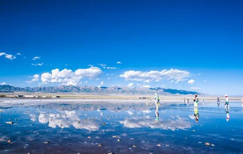 【茶卡鹽湖】被國家旅游地理雜志評為“人一生必去的55個地方”之一,這里的采鹽歷史非常悠久,湖水含鹽量很大,湖面上會自然結晶,一片純白。結晶之上是一層薄薄的露水,將天空、云朵和對岸的山都倒映在白色的湖里,非常漂亮,所以也被稱為“中國的天空之境”。大家可以乘坐景區內的小火車前往景區深處游玩,如果不乘坐小火車,沿著鐵軌向湖深處散散步拍拍照片也是非常愜意的。