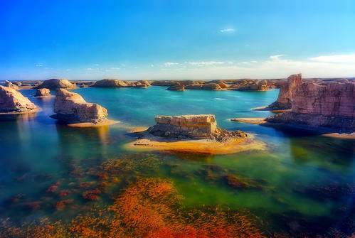 大湖之西是海西,大漠深處,在無人煙的峽谷中穿行,感受大自然的鬼斧神工,看縱橫交錯的雅丹河谷,形態各異、忽影忽現的土丘,你的心靈會被震撼,人會被大自然所征服。