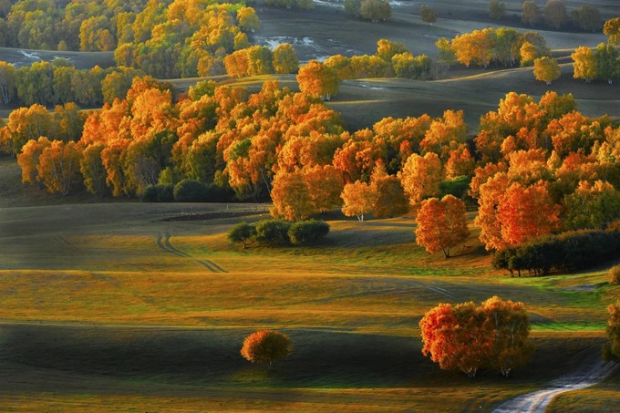 連綿起伏的小丘陵上,白樺林,草原,沙地,湖泊,花海,任性組合,時而簇擁抱團,時而相互獨立,如此美景,只有來了才能體會!不翻過眼前的山丘,永遠不知道另一邊是什么景象,可愛的馬鹿、狍子、狐貍、田鼠、草原黃鼠偶爾會探個頭點綴畫卷。