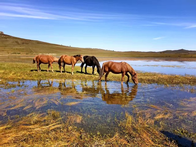 傳說康熙與葛爾丹大戰(zhàn),放炮轟散了葛爾丹的駱駝陣,強烈的震動改變了此地的地理結(jié)構(gòu),致使地下水涌出形成了水泡。 --由于在大戰(zhàn)中康熙皇帝的舅父,佟國綱將軍血浴沙場,“將軍泡子”由此得名或者是改名。 --當(dāng)年金戈鐵馬仰天嘯,壯士悲歌卷西風(fēng)的血肉沙場,今天已變?yōu)榫G草茵茵,波光漪漣的旅游勝地。 --這里水面開闊,四面環(huán)山,蘆葦叢生,水草旺盛,每天下六點多鐘時,會有一大群馬飛奔到湖邊來喝水,群馬入水,濺起的水花非常漂亮。 --夜幕降臨,在泡子邊的蒙古包里住一晚,圍坐在篝火旁欣賞如泣如訴的馬頭琴和抑揚悲壯的蒙古長調(diào),別有意境。