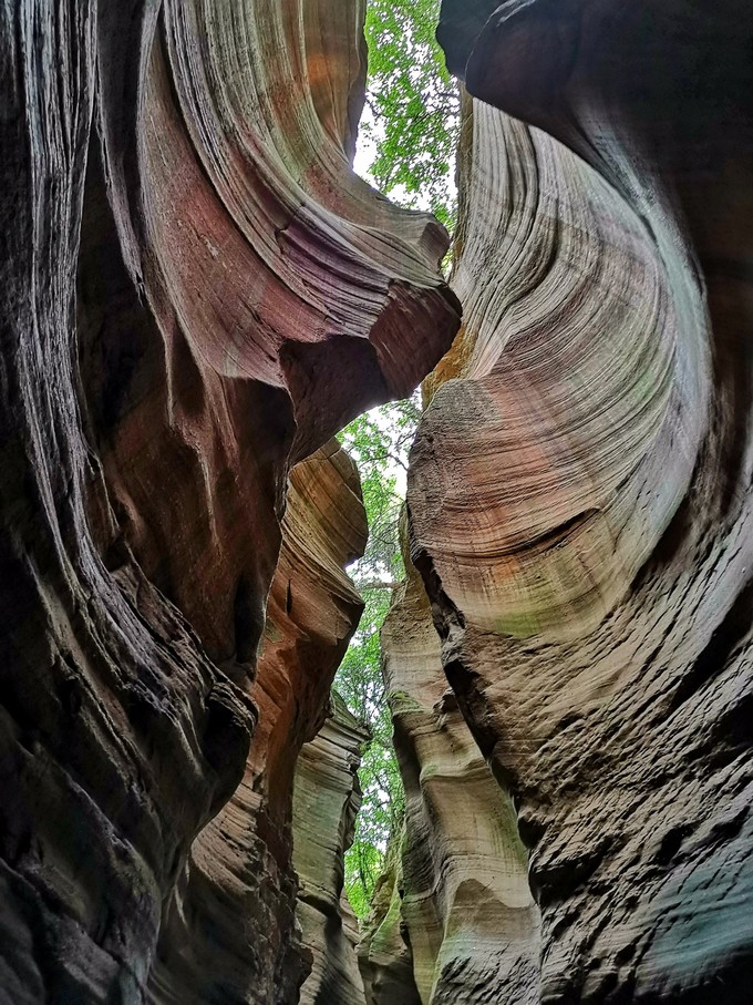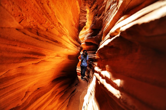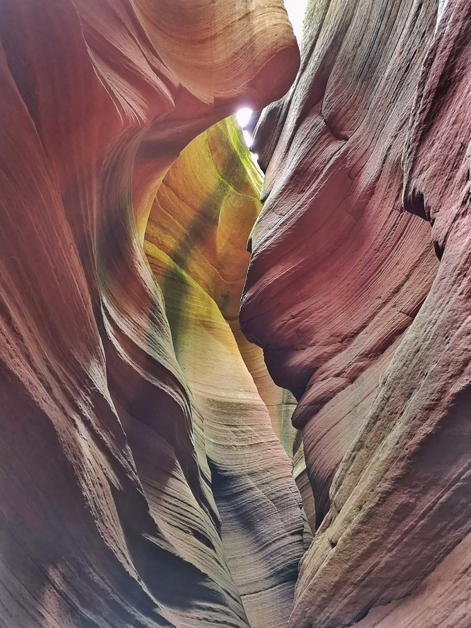 樺樹(shù)溝是景色最美最精華的峽谷,全長(zhǎng)300米左右,溝里游客很多,多到走不動(dòng)路。中午11點(diǎn)至下午2點(diǎn)光線(xiàn)最好,因?yàn)閸{谷頂部狹窄,如果沒(méi)有光線(xiàn)谷內(nèi)比較幽暗。樺樹(shù)溝上窄下寬, 和龍巴溝相反,巖石更有曲線(xiàn)和紋理,色彩也更豐富,配合恰好的光線(xiàn),絕對(duì)能出大片。