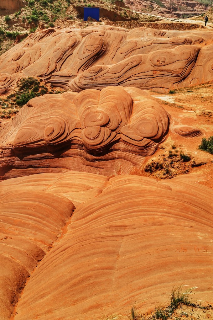 在同一緯度上,我國(guó)陜北有一個(gè)景致絲毫不遜于美西的波浪谷!它隱藏在陜北毛烏素沙漠的邊緣——靖邊縣城東南22公里處的龍洲鎮(zhèn),四面群山、碧水環(huán)繞,方圓幾十公里的紅砂巖地貌,當(dāng)?shù)厝朔Q(chēng)“波浪谷”、“紅石峁”,也叫靖邊紅沙巖峽谷。這里少為人知,還不是著名景點(diǎn),長(zhǎng)途跋涉的機(jī)票錢(qián)省了,重要的是免門(mén)票、免門(mén)票、免門(mén)票……靖邊龍洲丹霞波浪谷是中國(guó)干旱地區(qū)最典型和面積最大的丹霞地貌景觀(guān),在數(shù)千萬(wàn)年的風(fēng)力和雨水的沖刷下才顯露出來(lái)形成孤立的山峰和形態(tài)各異的奇巖怪石。在龍州丹霞的每一塊砂巖上的紋路都千變?nèi)f化,有的像波浪,有的像獸首,有的像流水,有的像云朵,有的像陀螺,形態(tài)各異,栩栩如生,引人入勝。這里的紅色砂巖在會(huì)呈現(xiàn)不同的景色。在雨后天晴時(shí),紅砂巖的色澤會(huì)更加鮮艷,景色壯觀(guān)奇特。