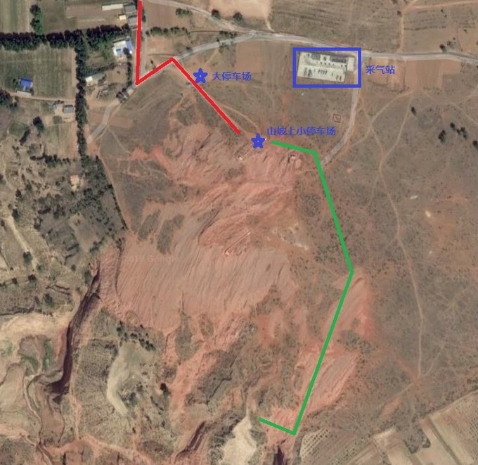 紅線(xiàn)為行車(chē)路線(xiàn),綠色為步行路線(xiàn),藍(lán)星為停車(chē)場(chǎng)。純正原創(chuàng),僅供參考。