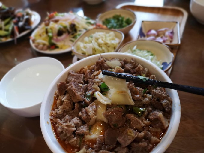 強(qiáng)烈推薦靖邊縣的“龐學(xué)勤兄弟羊肉面”!可以選面條或面片,面條端上來(lái)滿(mǎn)滿(mǎn)的一層羊肉!優(yōu)質(zhì)羊肉面大碗37元,小碗34元,羊肉完全不膻,超級(jí)香!