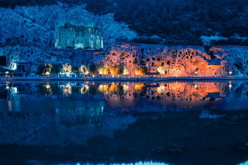 龍門石窟位于河南省洛陽市區(qū)南面12公里處,是一個(gè)風(fēng)景秀麗的地方,這里有東、西兩座青山對(duì)峙,伊水緩緩北流。遠(yuǎn)遠(yuǎn)望去,猶如一座天然門闕,所以古稱“伊闕”。自古以來,為游龍門的第一景觀。
