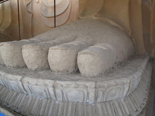 甘谷大佛石窟造象可遠(yuǎn)溯至北魏,具體年代已經(jīng)無從稽考。現(xiàn)存釋迦牟尼大佛像始鑿于北魏,一直到盛唐才趨完美。大佛石胎泥塑,身高23.3米,腰闊10.4米,結(jié)跏跌坐于蓮座之上,高大魁梧,溫順善良,坐于30.2米高、窟頂呈圓拱形的石窟內(nèi),頤面豐滿,肉髻高突,兩耳下垂,頸短并飾三道弦紋,短須作蝌蚪狀,施拔濟(jì)眾生印,足踩豐蓮。窟內(nèi)還殘存懸塑達(dá)摩、頻伽、飛天、卷云、蓮葉等,栩栩如生。