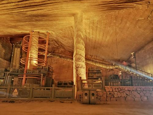 龍游石窟為什么要向山中、地下采石,而不是露天開采?有過生活經(jīng)歷的老師說:“山體內(nèi)部的石頭,往往比山殼上的要松脆些,這對(duì)原始采石來說比較容易。”石窟里為何有那么多廳、柱?也因?yàn)槭|(zhì)松脆,所以古人要在各采石區(qū)(就是今天看到的廳)之間保留石壁,在廳中留幾根石柱,以支撐山體,以致形成幾個(gè)廳互不相通的格局。至于廳壁為什么能那么薄?這并不需要什么高科技手段,經(jīng)驗(yàn)豐富的采石工憑借敲擊聲就可以判斷自己和對(duì)方的距離,煤礦營救不也常常借助敲擊聲嗎?