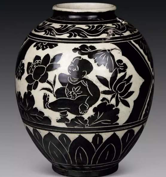 磁州窯的匠師們吸收了傳統(tǒng)的水墨畫和書法藝術(shù)的技法,創(chuàng)造了具有水墨畫風(fēng)的白地黑繪裝飾藝術(shù),開啟了中國瓷器彩繪裝飾的先河。