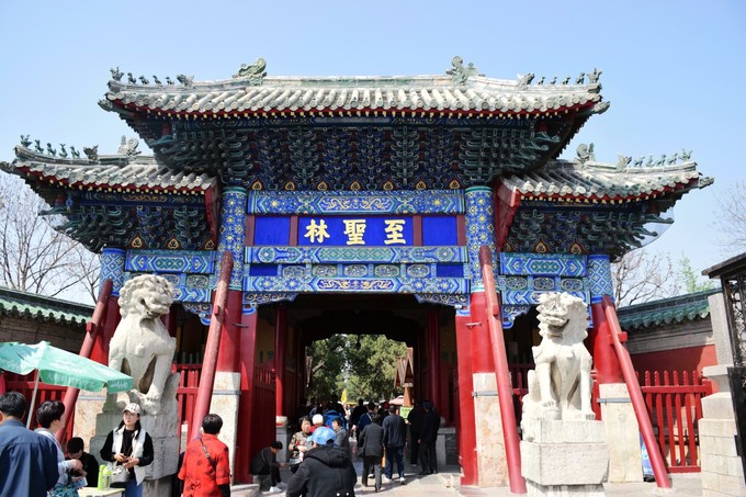 孔廟,始建于春秋時期,歷經兩千多年,歷代均有增修擴建,現存的建筑群絕大部分為明、清時期所建??讖R,南北長1300多米,東西寬150多米,三路布局,九進院落。為祭祀孔子的廟宇,歷史上曾有12位皇帝親臨此致祭。