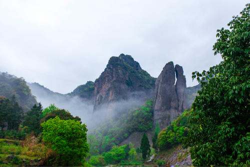 凈名大峽谷,即雁蕩山森林公園。在這里植被覆蓋率是相當(dāng)?shù)母?,?fù)氧離子也是爆表的狀態(tài),沿著登山道一路上山,會經(jīng)過梅花樁,水濂洞,回頭虎,一枝香等景點。