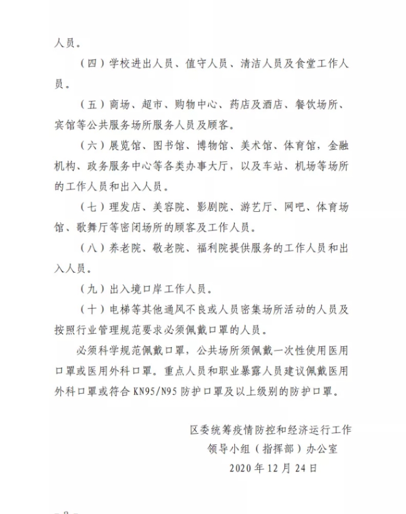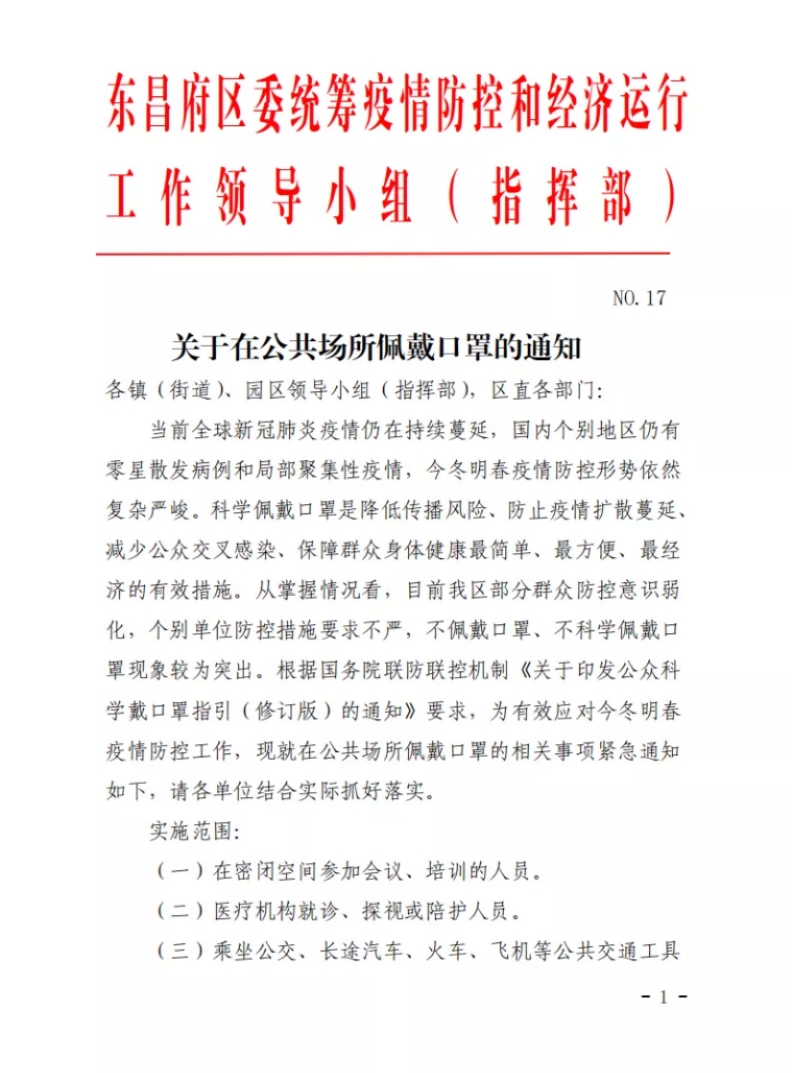 關于在公共場所佩戴口罩的通知