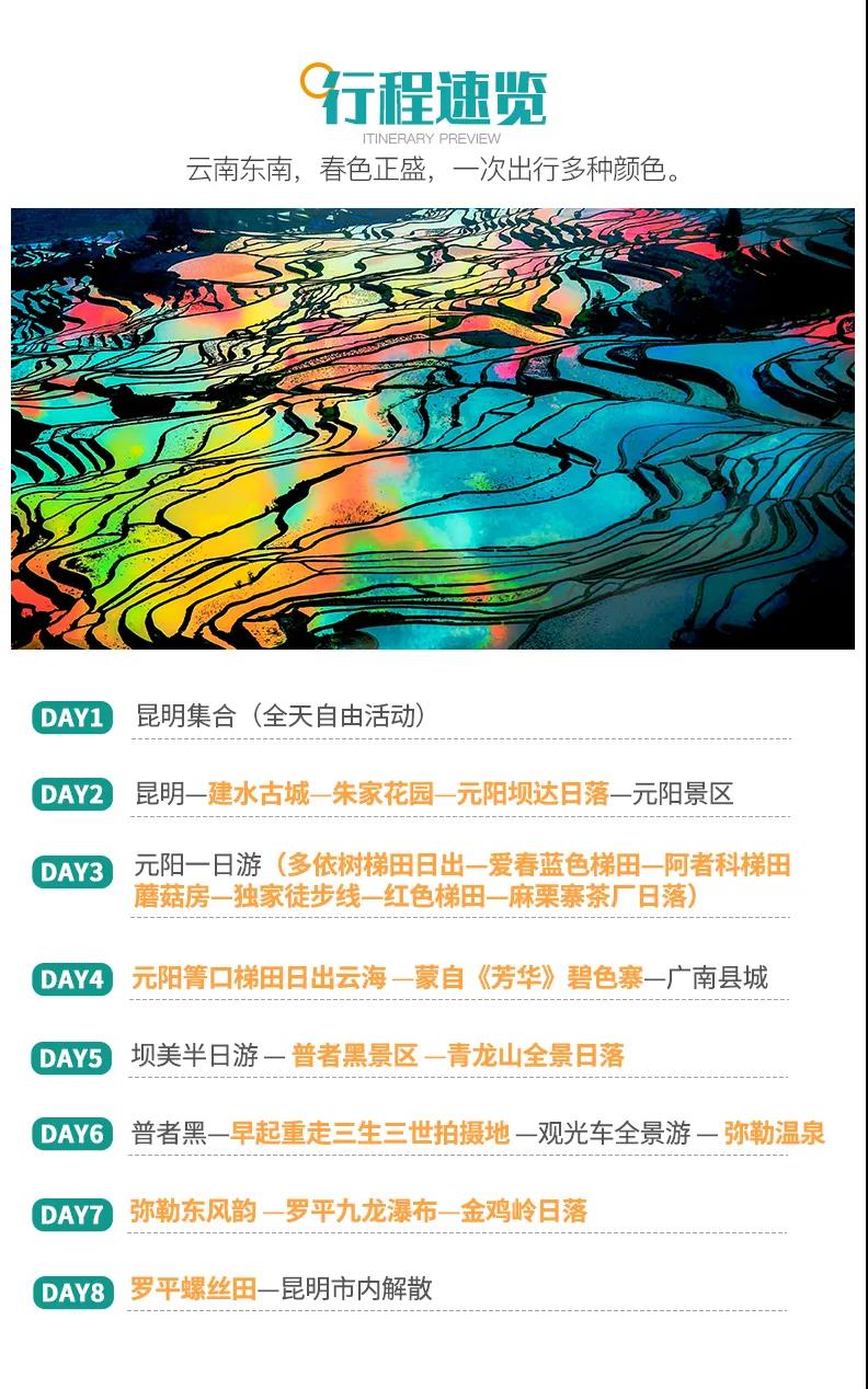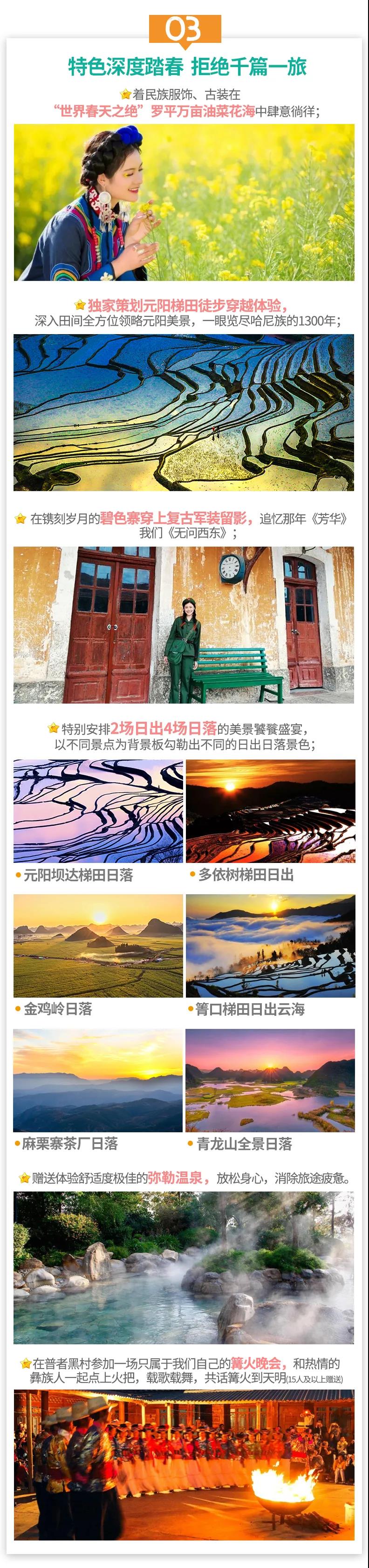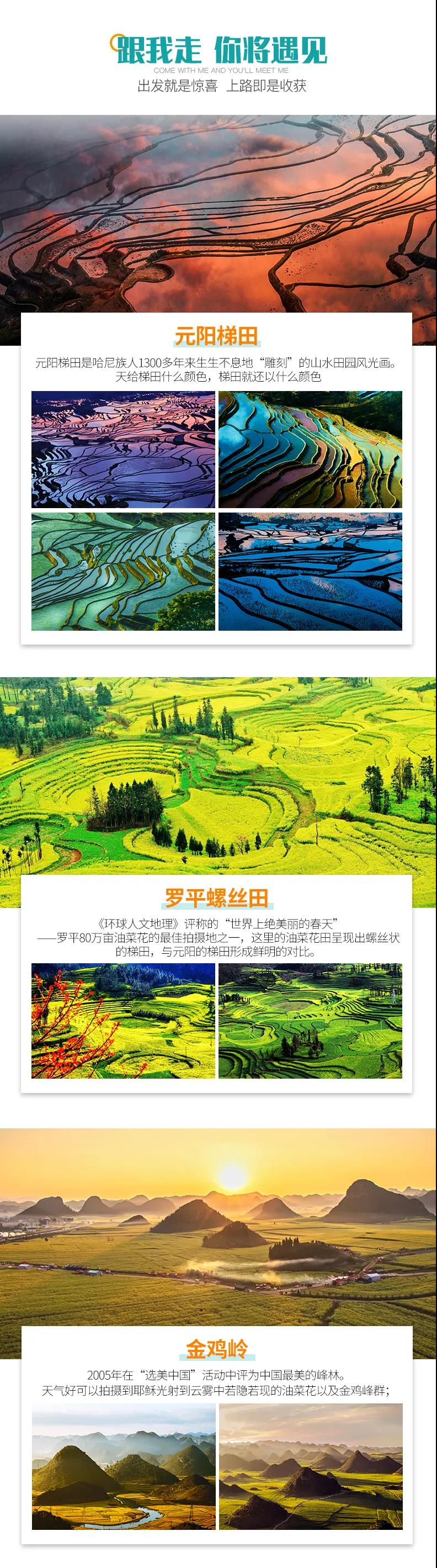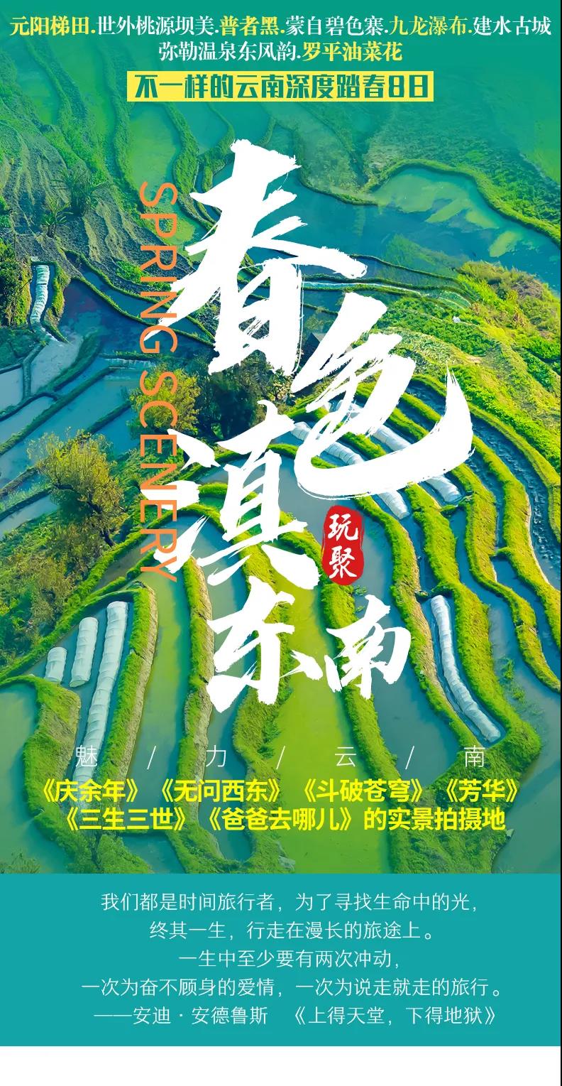元陽梯田+羅平油菜花+世外桃源壩美+普者黑+蒙自碧色寨+彌勒溫泉+東風韻+九龍瀑布+建水古城云南踏春