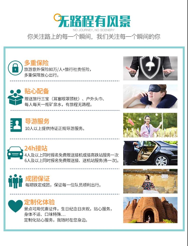 導游服務:10人以上提供專業持證導游服務;10人及以下,由經驗豐富的司機提供向導服務,無單獨導游服務。