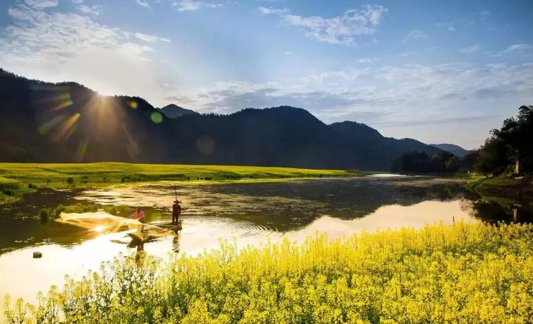 早餐后集合赴新安江山水畫廊【120公里】,三月初春,在這個繁花似錦的季節,金黃的油菜花鋪滿岸堤,左邊的油菜花規規整整地鋪滿田間,新安江流淌而過,藍天、白云、春江、花海、小舟、民居,如詩如畫;右邊的油菜花一直延伸到山邊,間或有幾簇映山紅,山花、茶樹、桃花,讓人寧靜悠遠。