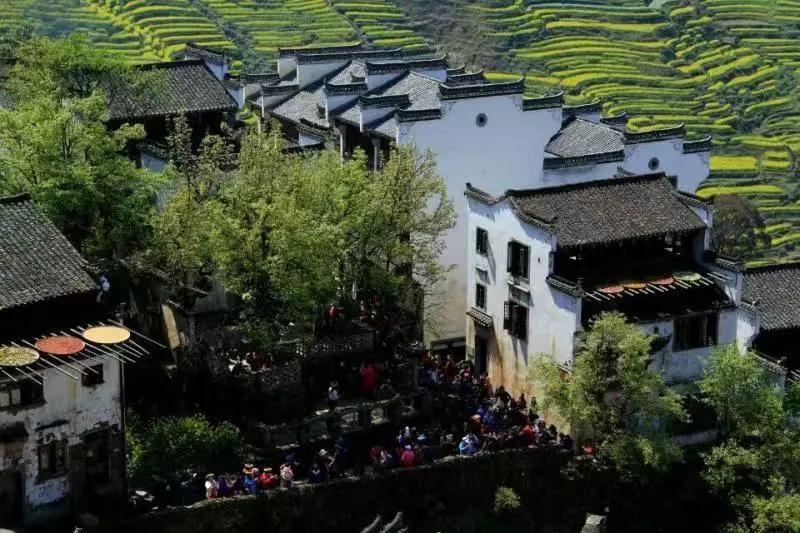 早餐后前往梯云村落、夢幻田園--篁嶺人家,【80公里】一個懸掛在山坡上的古村落,群山環繞的數百棟徽派古民居在百米落差的坡面錯落有序,與對面層層疊疊的千畝梯田花海遙相呼應,地無三尺平,自然條件的局限卻激發了先民的想象和創造力,從而在無意間造就了一處中國絕無僅有的“曬秋人家”風情畫。篁嶺屬典型山居村落,民居圍繞水口呈扇形梯狀錯落排布。篁嶺因”曬秋”聞名遐邇,村落“天街”似玉帶將經典古建串接,徽式商鋪林立,前店后坊,一幅流動的縮寫版“清明上河圖”。
