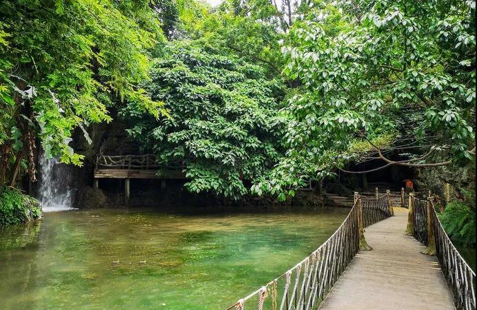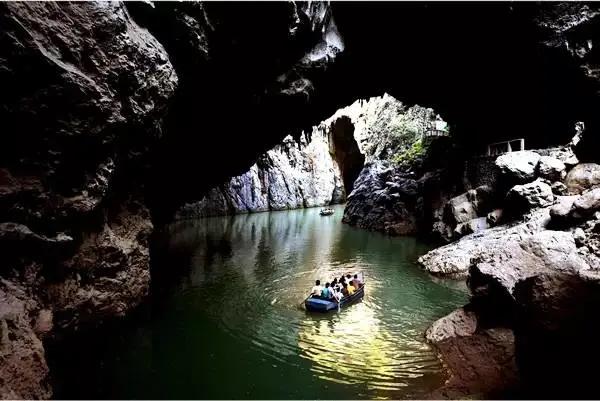 早餐后,乘車約2小時抵達【九洞天景區】(游覽時間約3-4小時)景區生態景觀秀美、溝壑縱橫、植 被發育、伏流明暗交替,洞洞相連,組合成集溶洞、伏流、天窗、天坑、峽谷、天生橋、懸崖、絕壁、峰叢幽谷等為一體的雄奇瑰麗的巖溶大觀。在這一段長約2公里的六沖河河道上,箱形切割頂板 多處塌陷,形成了多個形狀、大小各異的天窗、天坑,是已發現的天窗天坑最密集的溶洞群,是可供乘船游覽最高大的溶洞群。