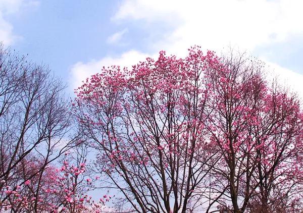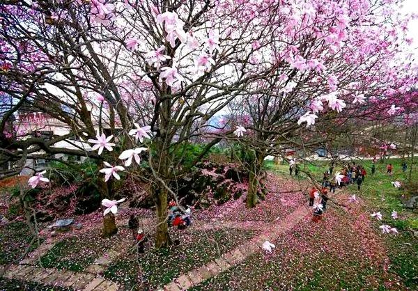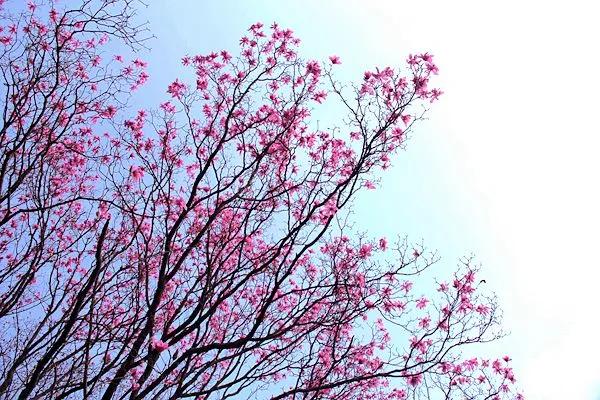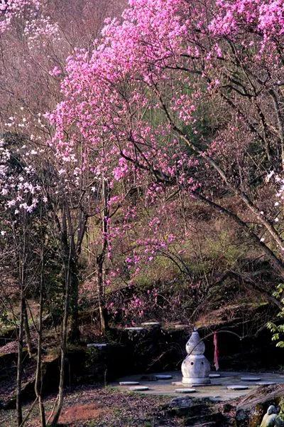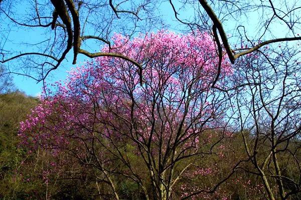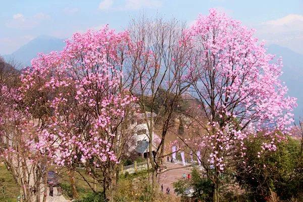 在漢中的油菜花競相開放的時候,北川藥王谷的野生辛夷花也是風華正茂的時候。漫山遍野的粉色花朵爭奇斗艷,蔚為壯觀。
