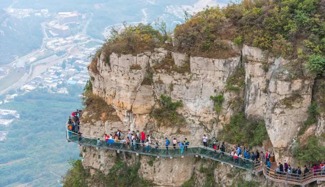 后前往云臺(tái)山,自行游覽盆景峽谷——【溫盤峪】(又名紅石峽)。那里集華夏山水與方寸之中;欣賞白龍瀑、黑龍洞、懸石、相吻石、含羞石、天女散化瀑等景觀,觀北方罕見景觀鐘乳石,盡情領(lǐng)略“真山、真水、真空氣”,游覽子房湖, 后游覽云臺(tái)山最高峰【茱萸峰】,茱萸峰是歷代文人墨客,僧道修行的圣地,這里植被茂密,古樹參天,有千年名樹紅豆杉,五角楓樹,太行花,森林覆蓋率高達(dá)93%,滿山覆蓋的都是原始次生林,有天然氧吧之美譽(yù)。踏千階的云梯棧道登上海拔1308米的茱萸峰頂,但見群山連綿,峰涌云動(dòng),使人頓生“會(huì)當(dāng)凌絕頂,一覽眾山小”的豪邁氣概。俯視腳下,群峰形似海浪涌。山頂氣候多變,倏忽間風(fēng)起云生,白霧從山間咕嘟嘟地涌出,紅日隨即隱去。山峰在云霧中出沒,云騰山浮,如臨仙界。玻璃棧道位于云臺(tái)山茱萸峰鳳凰嶺景點(diǎn),在海拔1080米的半山腰上依崖而建。【玻璃棧道】分為兩段,其中一段沿崖壁呈U型,另一段懸于千米懸崖之上,總長400余米,寬約1.6米。(玻璃棧道體驗(yàn)費(fèi),為20元/人需自理,如遇景區(qū)政策性關(guān)閉,則取消該景點(diǎn),不另行通知,不退任何費(fèi)用)游覽結(jié)束返回聊城。