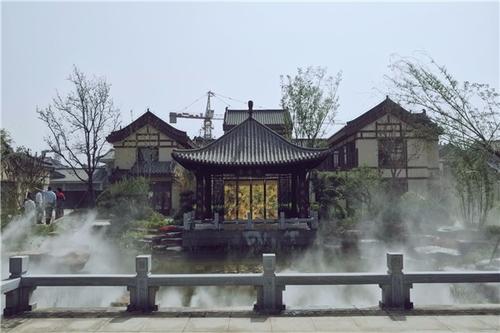 云臺(tái)古鎮(zhèn)景觀的打造以“鄉(xiāng)愁”為主題,最大限度的展現(xiàn)詩酒田園自然之美,將“竹、林、花、菜、果、水”等果蔬、農(nóng)作物的鄉(xiāng)村元素通過藝術(shù)設(shè)計(jì)的升華,植入到古鎮(zhèn)的每個(gè)角落。在公共開放休閑區(qū)域設(shè)計(jì)散點(diǎn)式果園、花田、稻田等景觀空間,植物、石材、木、磚、陶、水車、石墨、古井、古樹、棚架等鄉(xiāng)土自然材料,通過造景手法和簡單的藝術(shù)加工處理,處處散發(fā)著濃郁的鄉(xiāng)愁氣息。