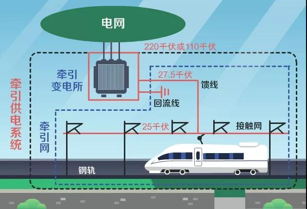 另外,高鐵用電和家庭用電不同。家庭用電的電壓等級一般是220伏,而高鐵用電雖同為單相電壓,但電壓等級卻高達25(27.5)千伏。這種單相、25(27.5)千伏的交流電是由牽引變電所將電網輸的電轉變而來。