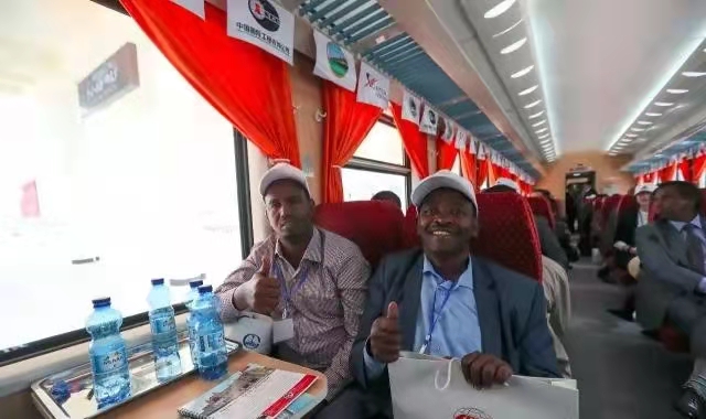 乘坐亞吉鐵路首發列車的非洲兄弟為中國點贊