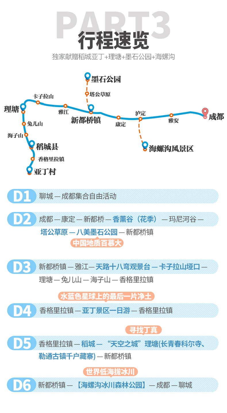 新都橋鎮 — 海螺溝冰川森林公園 — 瀘定 — 成都 —  聊城