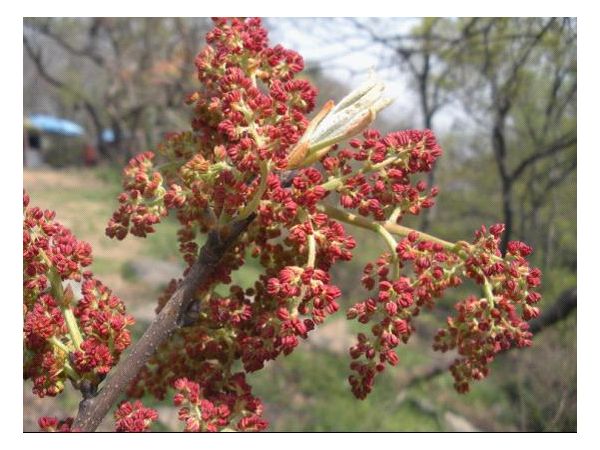 黃連木花期3月~4月,花粉量多、含蜜量大,是早春重要的蜜源植物。種子經榨取油脂后的渣粕含有蛋白質和大量粗纖維是優良的動物飼料。