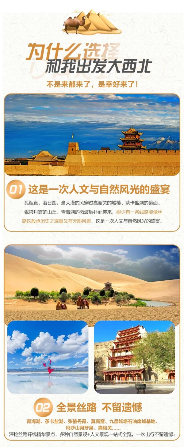 丹霞地質公園+嘉峪關+敦煌+莫高窟+鳴沙山月牙泉+阿克塞石油小鎮+大柴旦翡翠湖+柴達木盆地+茶卡鹽湖+青海湖二郎劍景區+塔爾寺