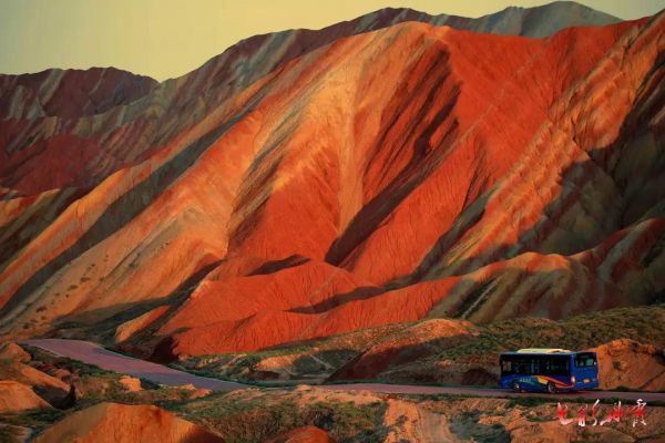 早起我們告別蘭州前往張掖【丹霞地質公園】,這里的自然景觀得天獨厚,是中國丹霞地貌發育最大最好、地貌造型最豐富的地區之一。景區還是張藝謀的電影《三槍拍案驚奇》、姜文執導的電影《太陽照常升起》、知名電視劇《神探狄仁杰》的外景地。2005年11月由中國地理雜志社與全國34家媒體聯合舉辦的“中國最美的地方”評選活動中,當選為“中國最美的七大丹霞”之—。如果天氣晴好,在這里可以觀賞到一場唯美的落日盛宴。感受落日的余暉落在起伏的丘陵上,晚霞般的大地與落日交相輝映,見慣了城市中的鋼筋混凝土,此時不由的心神也會感到空曠了。