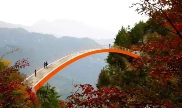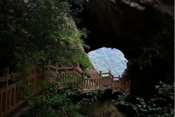 發源于老君山的黃巖河流經此地,經過億萬年的流動、溶蝕,形成一巖溶性天生穿洞,河水穿洞下瀉,呈現出‘天橋飛渡’。在這里有風情萬種的飛瀑,鬼斧神工的天然石橋,美麗的蘭花山,險峻扼要的石壁棧道,組成了一幅絢麗多彩的山水畫卷。