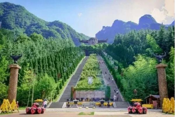 神農壇分天、地二壇,依山而建。天壇正中聳立著炎帝神農巨型牛首人身雕像。天壇之下為地壇,辟有可容數千人之眾的廣場。廣場大圓圖案,代表天;圓心處設正方形,代表地,方形圖案中,五彩石分列表示木、火、土、金、水五行。
