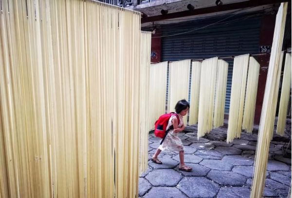 上午我們?cè)诶辖稚吓臄z曬面的場(chǎng)景,家家戶戶都在制作手工的面條,一排排的晾曬在逐級(jí)而上的臺(tái)階晾曬;學(xué)生、百姓穿梭其間,滿滿的的百姓生活氣息;下午前往福寶古鎮(zhèn),這里依山傍水而建的民居是佛寶古鎮(zhèn)的一道風(fēng)景線,隨水而陡纊故有許多吊腳樓。傍晚的老街,常伴一盞小燈旁。