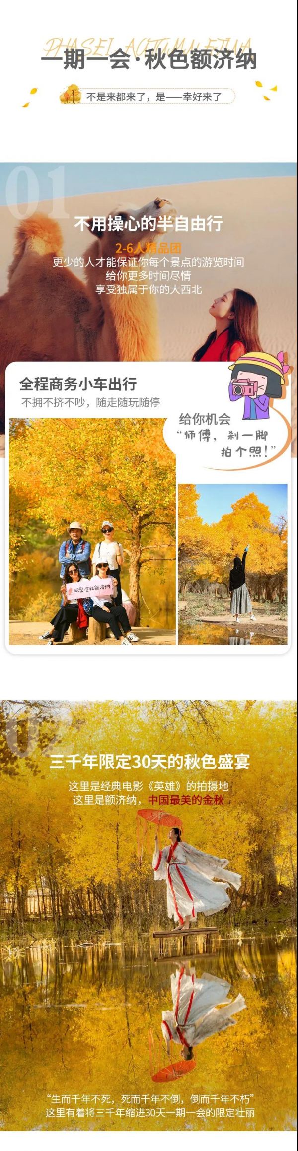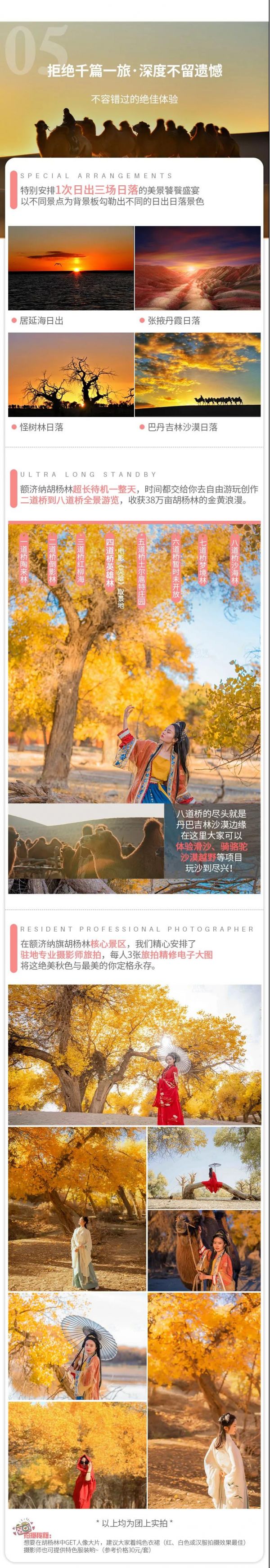 在額濟(jì)納旗胡楊林核心景區(qū),我們還精心安排了駐地專(zhuān)業(yè)攝影師旅拍,每人至少3張旅拍精修電子大圖,將這絕美秋色與最美的你定格永存。