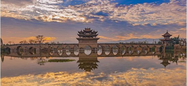 隨后游覽清乾隆年間的【雙龍橋】,雙龍橋是一座三閣十七孔大石拱橋,橫亙于南盤(pán)江支流的滬江河,因兩河猶如雙龍蜿蜒盤(pán)曲而得名;是國(guó)家地理雜志云南非常理想的拍攝點(diǎn)之一。