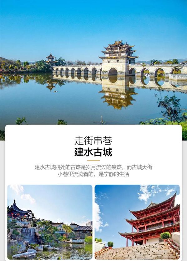 午餐后,前往建水古城,游覽清代名宅【朱家花園】,朱家花園是一組保持完好的清代私人建筑群,具有豐富文化內(nèi)涵又稱(chēng)“滇南大觀園”。后參觀建水西門(mén)大板井,自元初明代洪武年間,歷經(jīng)了千年的滄桑歲月,古井不但記載著建水的歷史,同時(shí)也是古城儒家文化興盛的印證。