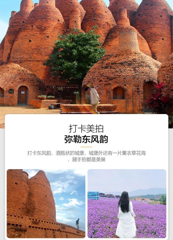后前往彌勒,游覽【東風(fēng)韻】(含電瓶車(chē)),被稱(chēng)為東方波爾多,萬(wàn)畝碧綠的葡萄園,夢(mèng)幻無(wú)際的紫色薰衣草,醉了每一個(gè)走進(jìn)東風(fēng)韻的人,順著中國(guó)最大的的紅磚建筑群萬(wàn)花筒藝術(shù)莊園,一路走來(lái),藝術(shù)的熏陶和美麗的風(fēng)景融為一體,讓您感受難得的東風(fēng)韻。游覽結(jié)束后入住石林溫泉酒店,體驗(yàn)溫泉給身心的放松。