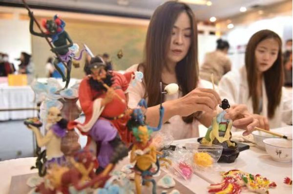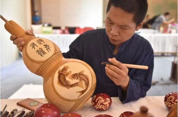 在現(xiàn)場,琳瑯滿目的非遺手造呈現(xiàn)在我們面前,有現(xiàn)場雕刻的東昌葫蘆讓外國友人大呼精彩,也有精心雕刻的木版年畫引人好奇,還有東昌毛筆、剪紙、面塑等多種非遺文化進(jìn)行展示。