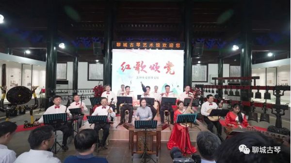 揭牌儀式后,各位領導和與會嘉賓一同觀看了由古琴學會-至和雅樂團精心編排演繹的節目:鐘磬樂《云水禪心》,小合唱《春風十萬里》,器樂合奏《紅歌頌黨》。