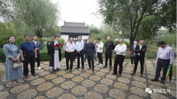 領導嘉賓對編鐘編磬“一見鐘情”,紛紛上前,敲響這自2400多年前就響徹華夏的中國聲音!大家在周達老師的引導下,參觀了雅樂琴文化展廳、衣冠華夏廳、古琴非遺傳習所、書畫創作展示以及斫琴體驗廳等區域。并且駐足鑒賞園區內每一副牌匾及楹聯,給予高度贊賞! 聊城古琴藝術館,打造集琴文化展示、斫琴體驗、非遺傳習、古籍研究、書畫創作于一體的文化新空間,既為廣大古琴愛好者提供一個學習展示交流的專業平臺,又能為市民群眾和外地游客帶來更加直觀的視聽體驗。