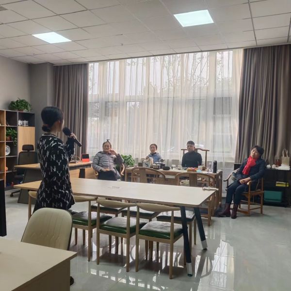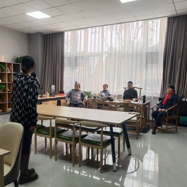 下午1:45,楊倚晴和苗苗早已來到了實訓室,為下午2:30老師的到來做準備。楊倚晴在煮茶,苗苗開始準備李鑫諾要用的PPT。
