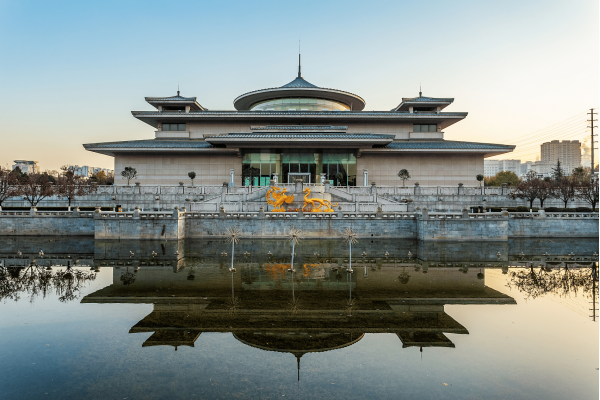 西安博物院的主體建筑—博物館(文物展館)由中國工程院院士、陜西歷史博物館的設計者、著名建筑設計師張錦秋創(chuàng)意設計。整體外觀以天圓地方理念創(chuàng)作,突出體現(xiàn)中國傳統(tǒng)的文化思想,與同院的小雁塔以及薦福寺古建筑群相得益彰、交相輝映。