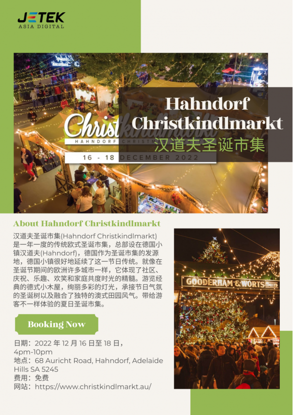 2022年阿德萊德的圣誕狂歡月即將到來!不負“節日之州”的頭銜,在2022年的最后一個月,讓我們一起為即將離去的2022年慶祝與歡呼!與家人和愛人以及朋友一起享受阿德萊德濃厚的節日氣氛。