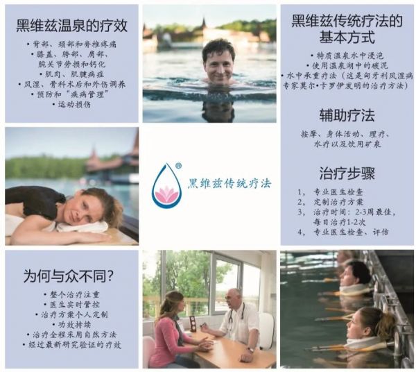 因此,雖然浴療是黑維茨湖水治療效果的基礎,但同時也包括其它治療法,比如著名的重量浴,各種醫療按摩,以及飲水治療等。