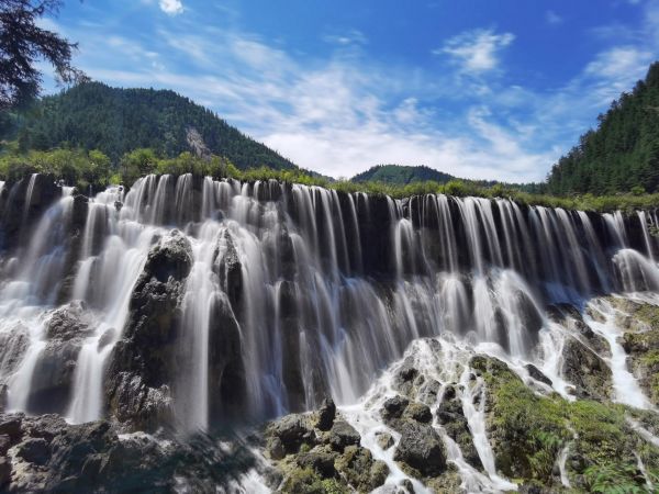 九寨溝以絕天下的原始、神秘氣氛而聞名。傳說很久很久以前,神勇的山神達戈熱戀著美麗的女神沃莫色莫,達戈用風云磨成一面寶鏡送于色莫,而色莫不慎將此寶鏡跌為108個碎片,化作108個海子(高原湖泊),從而成為九寨溝最美麗的108個景觀。這里雪峰玉立,青山流水,交相輝映,這里的瀑布、溪流更是迷人,如飛珠撒玉,異常雄偉秀麗。