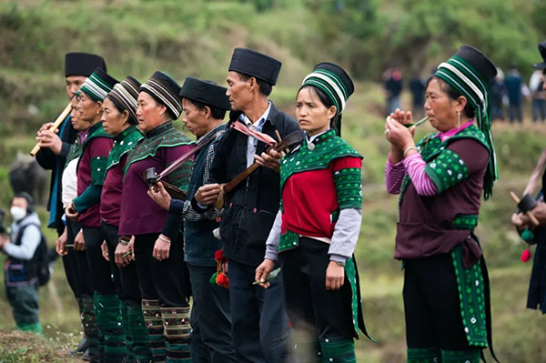 在這里,你可以看非遺傳承人現場刺繡表演,一針一線在指尖穿插,片刻之間,一幅幅刺繡成品呈現在鏡頭面前。也可以和哈尼族人一起穿上民族服裝,在村寨里或者梯田間吹奏著樂器,在鼓聲中翩翩起舞。