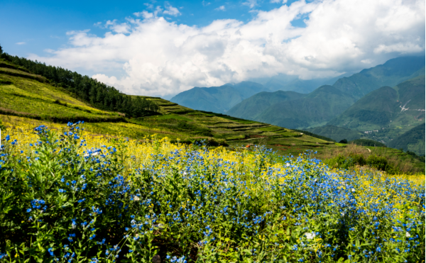 最近,在越西發現了一處絕美的“仙境”,藍紫色的野花繁星似地密布在,沒過膝蓋的綠草之中成群的蝴蝶在其間翩翩起舞。