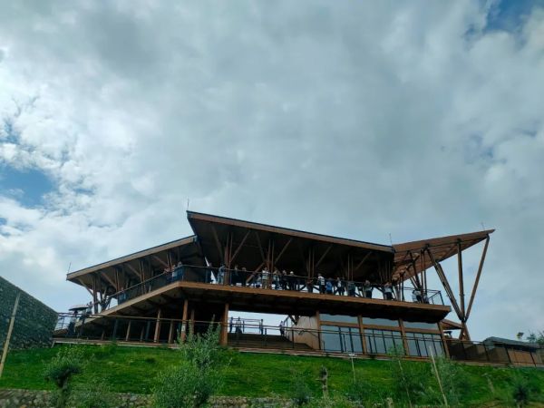 橄欖小鎮內的平頂山觀景臺,造型設計靈感源自于彝族圖騰——鷹。屋頂呈不規則形狀微微傾斜的屋頂頗有設計感,站在觀景臺上,視野廣闊可俯瞰到石龍鎮、宏模鎮全景,以及油橄欖基地的整體風貌。也可閑坐在一層平臺,品一杯香茗,撲面而來的是舒爽的山風,聞到的是清爽的茶香……
