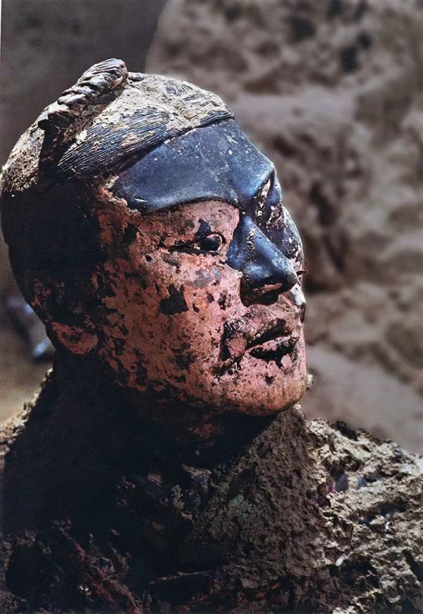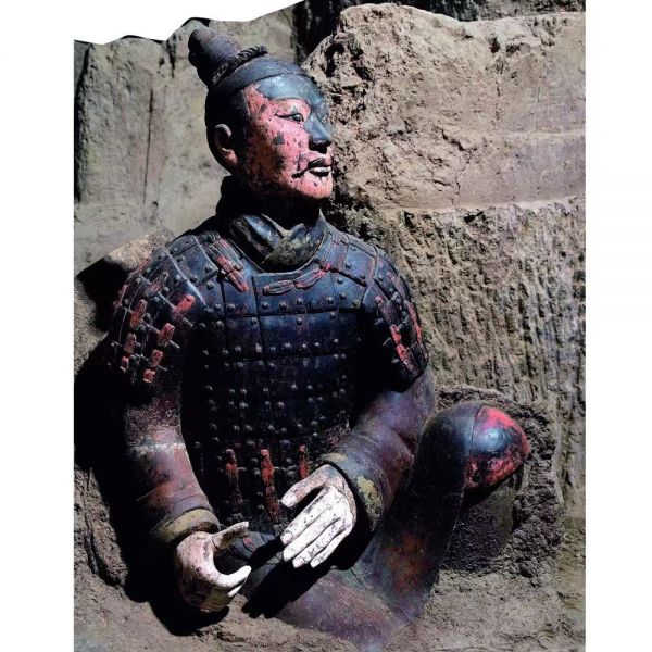 當初的兵馬俑都有鮮艷和諧的彩繪,發(fā)掘過程中發(fā)現(xiàn)有的陶俑剛出土時局部還保留著鮮艷的顏色,但是出土后由于被氧氣氧化,顏色不到十秒鐘瞬間消盡,化作白灰。現(xiàn)在能看到的只是殘留的彩繪痕跡。